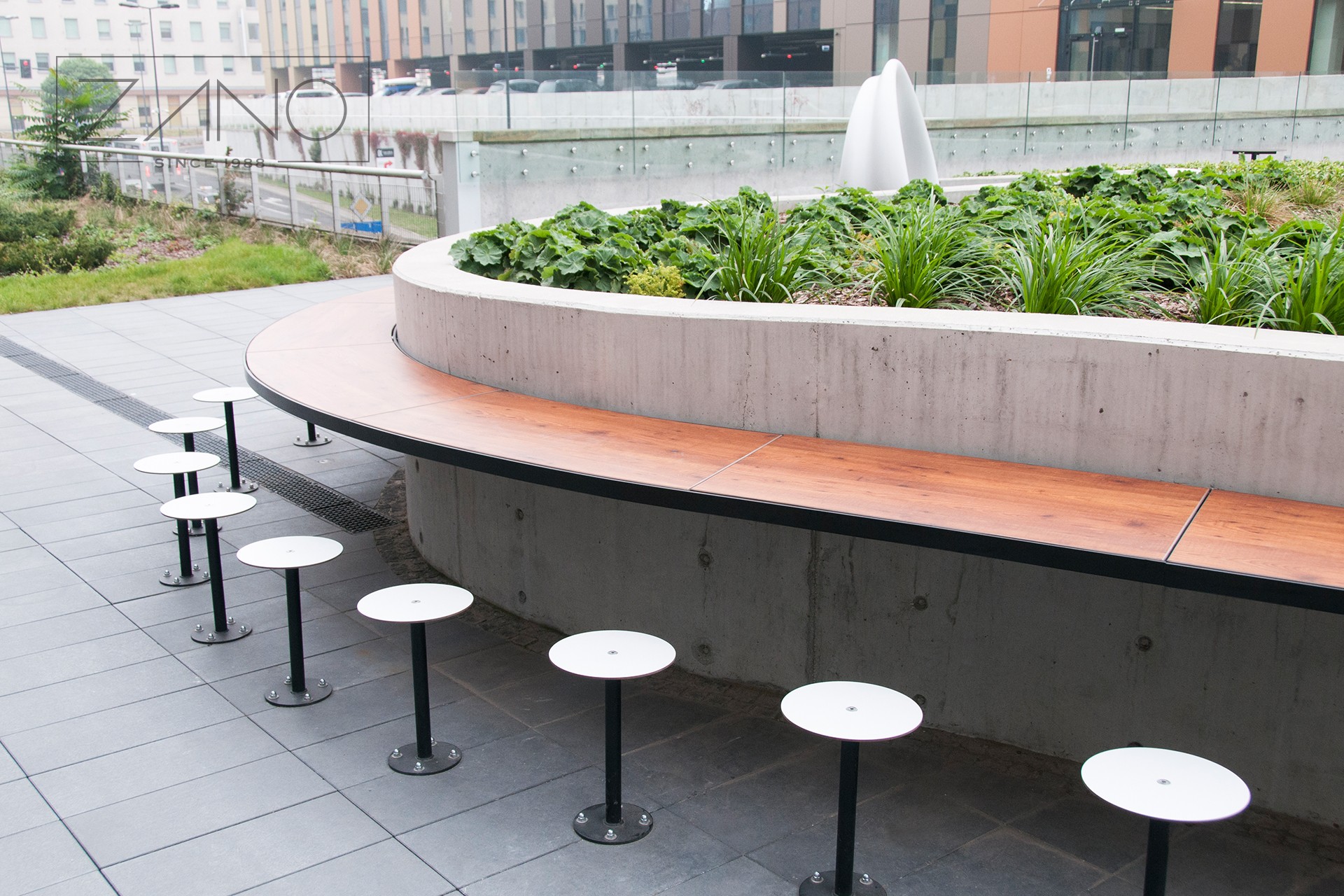 El uso de cartón reciclado en productos de mobiliario urbano permite una mayor durabilidad y una larga vida útil del producto. Funcionamiento sin mantenimiento problemático y costoso. En un entorno biológicamente activo (bosque, parque, jardines), es resistente al deterioro, la humedad, la putrefacción, los microbios y los insectos.