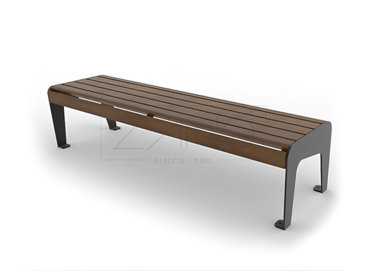 Banco Soft sin respaldo - banco de acero al carbono o inoxidable. Posibilidad de elegir madera exótica para el asiento. Los materiales utilizados de la mejor calidad garantizan la durabilidad y resistencia del banco contra los efectos del uso frecuente. La forma original de la estructura y el diseño moderno hacen que el banco Soft encaje en cada espacio urbano contemporáneo.