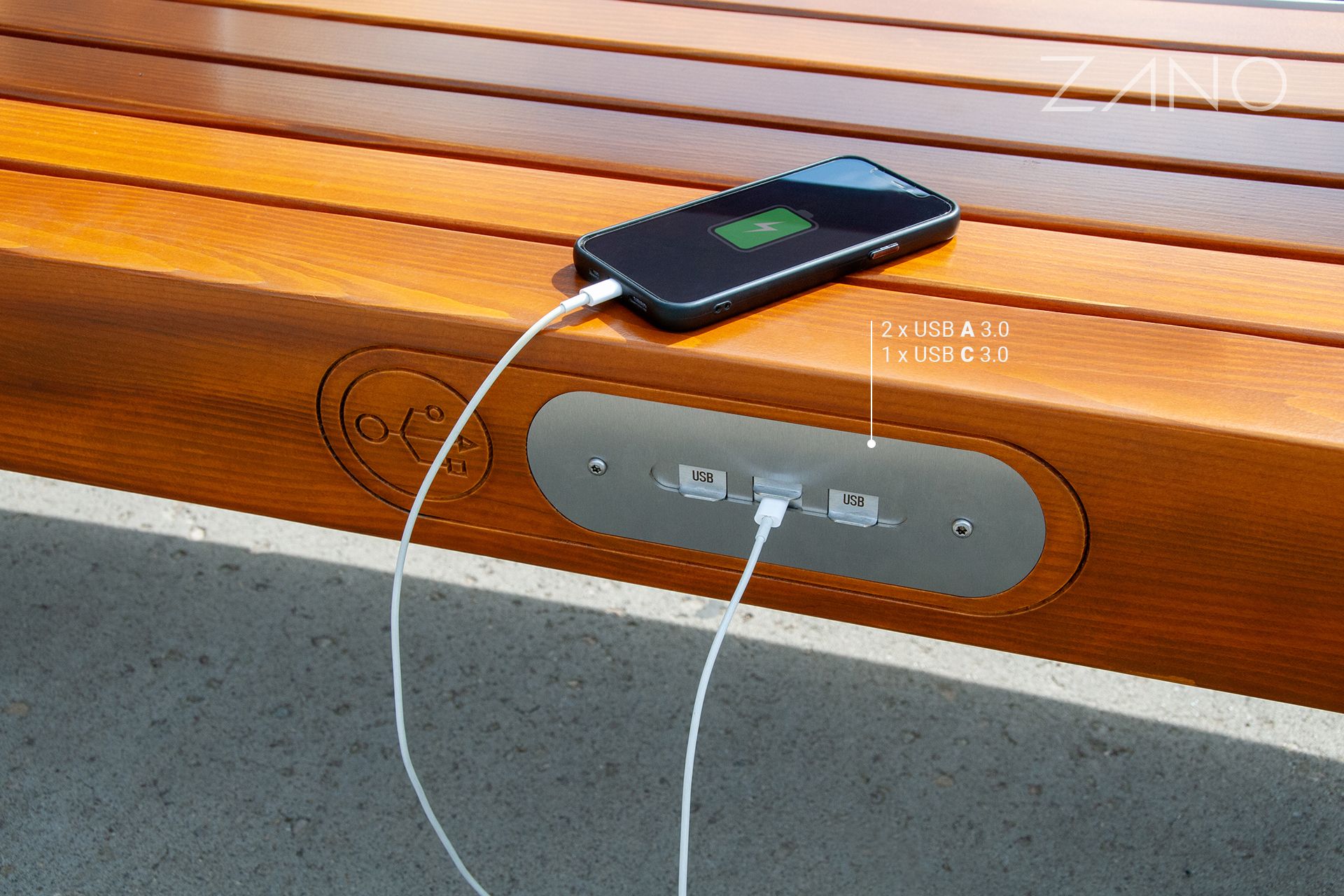 El banco solar Photon es una innovadora pieza de mobiliario urbano totalmente autónoma gracias a la energía solar. Unos paneles fotovoltaicos con una potencia total de 100 W permiten recoger la energía solar y almacenarla en baterías de gel de 36 Ah. Esto permite al banco funcionar independientemente de la red eléctrica. El equipamiento de serie del banco Photon incluye iluminación LED, que se enciende automáticamente al anochecer para iluminar el entorno del banco. Además, el banco está equipado con tres puertos de carga USB de tipo A para cargar dispositivos móviles. Además, puede elegir accesorios como un cargador inductivo, un módulo de punto de acceso Wi-Fi, un módulo de música (altavoz bluetooth o altavoz con memoria integrada y canciones reproducibles). También puede elegir baterías de litio de 40 Ah para una mayor eficiencia energética. Otras opciones incluyen una mesa adicional en el lado izquierdo del banco y portabicicletas dobles. La estructura del banco está fabricada con chapas de acero dobladas y soldadas y tablones de madera. Los paneles fotovoltaicos están protegidos por una doble hoja de vidrio templado. Los clientes pueden elegir los materiales de construcción, como acero al carbono galvanizado y recubierto de polvo en el color RALo acero inoxidable pulido. Los componentes de madera pueden ser de coníferas de origen europeo o de maderas duras exóticas. El banco Photon puede combinarse con otros productos de la gama Photon, como bancos, papeleras y jardineras. A menudo, los diseñadores y arquitectos optan por yuxtaponer el banco Photon con productos de las líneas Flash y Universe para crear un aspecto coherente y estéticamente agradable para los espacios urbanos.